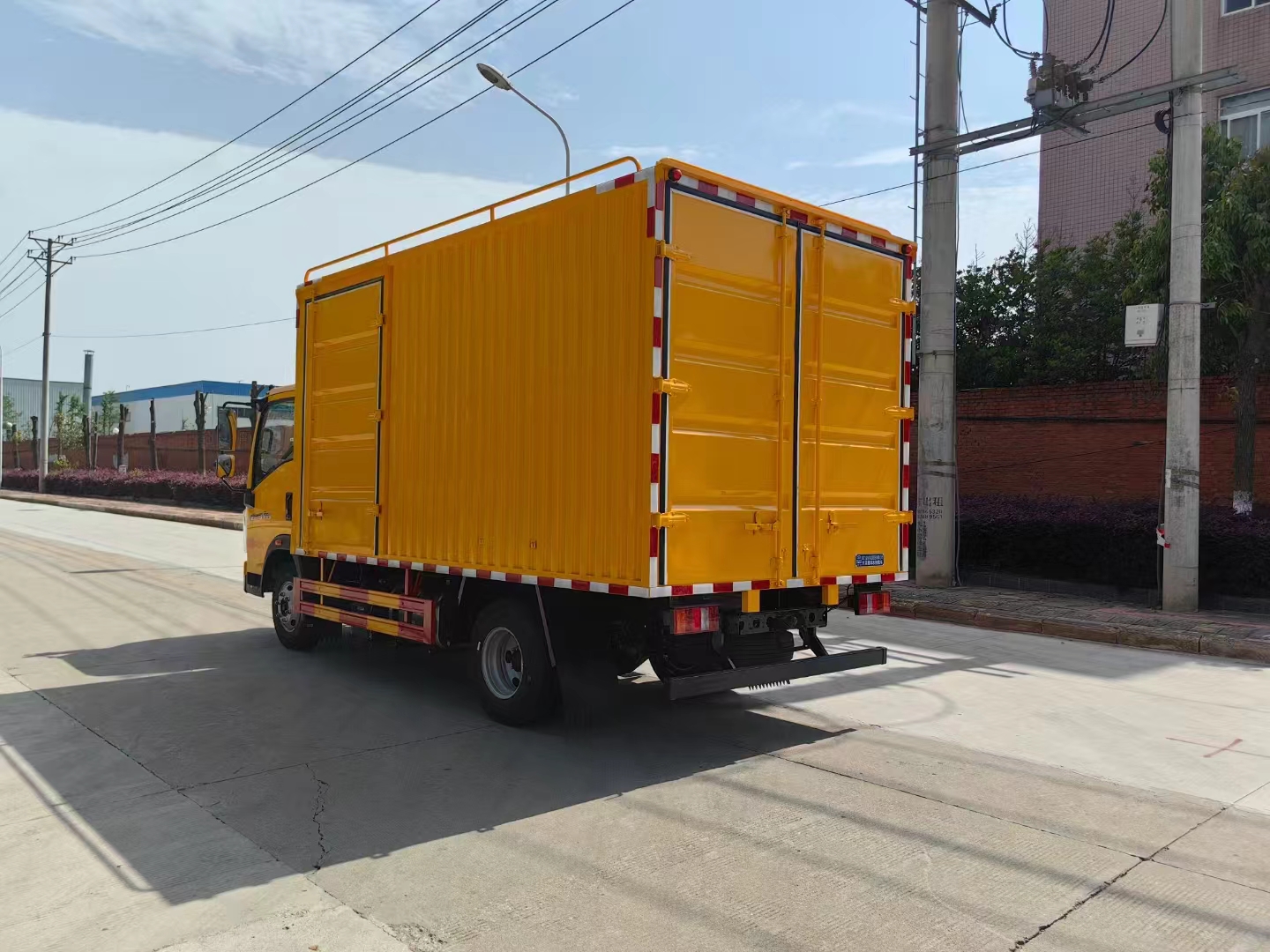 | 上裝配置 | 1、采用超大瓦楞板箱體或保溫隔熱箱體,箱體尺寸4200*2200*2000mm,右側箱體雙開門,后尾部箱體雙開門。按車廂大小貨架做上下兩至三層,帶攔板,防止物品掉落。車廂內頂部安裝2套LED照明燈,方便夜間操作,配150千瓦發電機組,或選配康明斯200千瓦斯坦福發電機組,6臺500方便攜式永磁排水泵,揚程10米,單臺泵排水量500m³/h,總排水量3000m³/h,揚程10m,重量32kg,單泵功率22KW,總功率132KW,出水口徑為200mm。 | ||