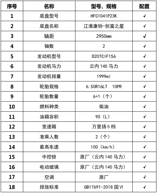 ??????湖北程力汽車:程力CL5043GLQ6BLS型江淮藍牌智能瀝青灑布車產品型號及參數配置,程力CL5043GLQ6BLS型江淮藍牌智能瀝青灑布車高清圖片,程力汽車系列程力CL5043GLQ6BLS型江淮藍牌智能瀝青灑布車最新報價請撥打客服熱線。車輛主要配置 產品商標 程力牌 公告批次 385(擴展) 產品名稱 瀝青灑布車 產品型號 CL5043GLQ6BLS 總質量(Kg) 4495 罐體容積(m3) 0.81 額定載質量(Kg) 695 外形尺寸(mm) 5520 × 1980 × 2420 整備質量(Kg) 36...