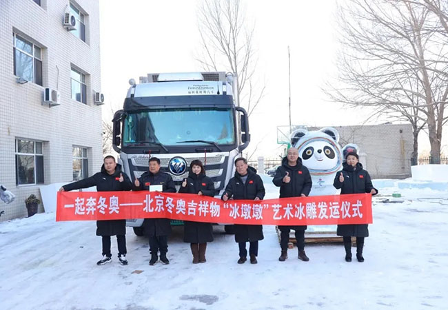 隨著2022北京冬奧會真正進入倒計時,全國人民的心也同步進入“北京時間”,并希望以自己的方式為世界首座“雙奧之城”貢獻力量。2022年1月4日,來自“冰城”哈爾濱的藝術家劉德臣,以松花江采集的堅冰為原材,秉承一片赤子之心,親手雕刻出一座重達數噸,以冬奧會吉祥物“冰敦敦”為原型的藝術冰雕作品,由歐曼自動擋冷藏車從哈爾濱運向北京,在世錦賽500米短道速滑世界冠軍于靜、薛瑞紅的共同見證下一起向冬奧!