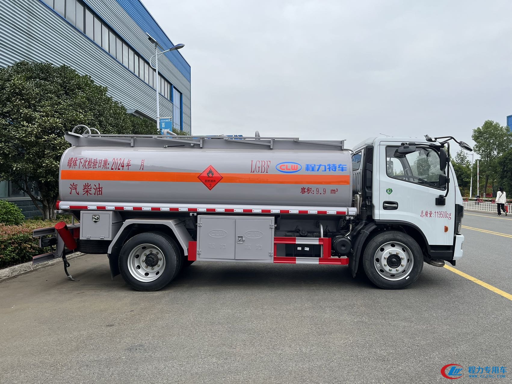 | 上裝配置 | 嚴格按照公告容積9.9方制作,Q235B板材,筒體4.2mm厚,封頭4.5mm厚,隔板4.2mm厚,單倉,罐頂壹個歐標罐口, 1個海底閥帶語音報警系統,帶76/40專用油泵(可泵進泵出),大流量加油機及15米加粗卷盤及槍,全套歐標,后爬梯、手動護欄、工具箱、后保險杠、側防護欄,按新標準制作,其他廠家標配,提供底盤證,整車證,上戶發票。 | ||