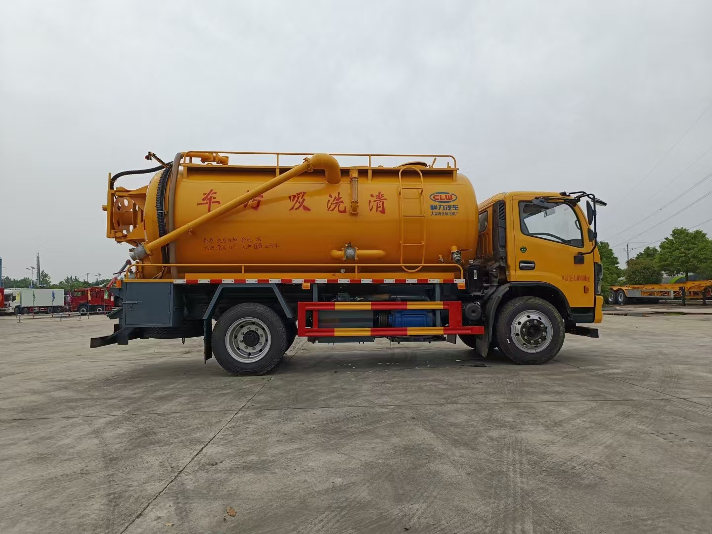 | 污水罐 | SK-12水循環(huán)泵,水循環(huán)泵水箱為碳鋼材質(zhì),頂部防溢閥位置盡量最低,尾部開大蓋,100球閥直通罐頂吸污,吸污壓力表裝在水箱附近,罐體尾部兩側(cè)工具箱,手動(dòng)油門,1根8米吸污管帶陰陽端接口,10個(gè)組合槍頭,其他廠內(nèi)標(biāo)配。 | ||