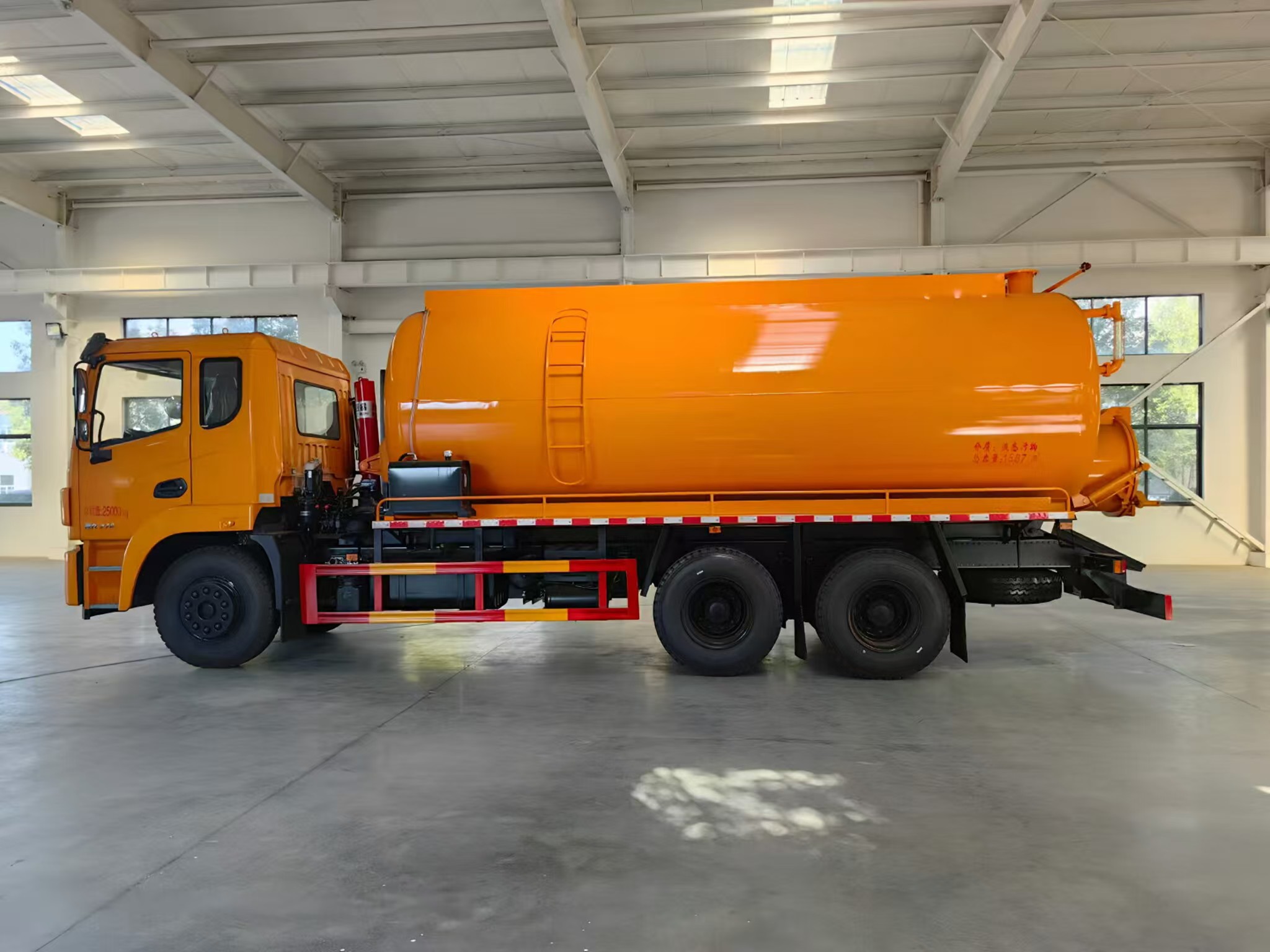 | 上裝配置 | 罐體容積約20方,8m碳鋼板材,選裝安裝山東204水環(huán)泵配,后封頭液壓打開。后封頭上一個(gè)800水泥蓋放污,可液壓開啟,后封頭一個(gè)6寸出口,一個(gè)100寸進(jìn)口直通罐頂,加強(qiáng)型車架,自卸車設(shè)計(jì),罐體帶舉升功能(前頂自卸),罐體尾部箭頭燈,帶一個(gè)視污窗口。帶8米吸污管。其余廠內(nèi)標(biāo)配! | ||