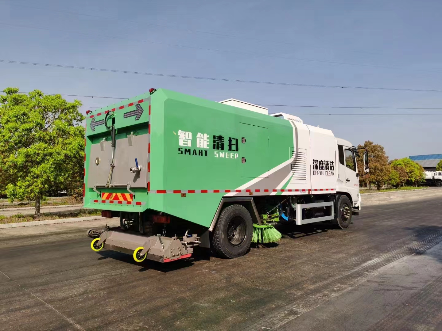 | 上裝配置 | 上裝控制部分采用一鍵式操作,點動所選作業模式及作業啟動。掃盤、吸盤、及所有水閥、氣缸隨控制器設定順序依次打開。隨后旋轉副發動機手動油門開啟清掃作業。車輛同時加裝倒車影像、遠程搖控(方便司機傾卸垃圾)以及多項語音提示音。 整車水箱容積4.5立方、垃圾箱(濕式垃圾倉)容積7.5立方、濾筒倉4立方。垃圾箱采用雙層上下結構,箱體為不銹鋼材質。中置清掃車左右立掃、后置滾掃吸盤(吸盤內部加裝高壓噴桿)、左右高壓側噴桿(可單獨工作一邊也可同時打開)。前獨立水箱、中部濾筒倉及后尾部雙層垃圾箱。風道匹配晴雨天干濕轉換風道(根據不同天氣、路況選擇相對應的作業模式)。 作業能力強:該車同時具備了洗掃車高壓沖洗作業能力以及滾掃吸塵車滾掃清掃能力,對于吸覆在路面的雜志、塵垢、油漬、粘著物有著較強清掃效果。車輛作業時不受睛雨天及路面積水限制,適用于多種路況及天氣環境。 | ||